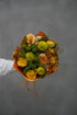 Amber Sunrise Bouquet, güneşin ilk ışıklarıyla uyanan sıcak renklerin, canlı dokuların ve taze enerjinin kusursuz bir birleşimi olarak tasarlandı. Sarının en neşeli tonları, kehribar ve bal rengi çiçeklerle harmanlanırken, yeşilin doğal canlılığı bukete dinamik bir karakter kazandırıyor. Turuncu-kahverengi krizantemler ve lime yeşili buton güller, buketin modern ve enerjik duruşunu güçlendiriyor.